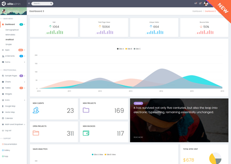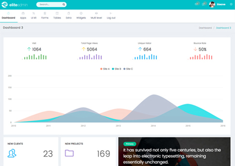 Wide range of Widgets are available with Elite Admin Package.